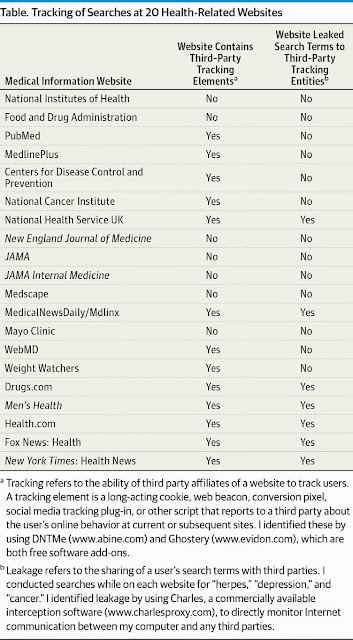 Patients who search on free health-related websites for information related to a medical condition may have the health information they provide leaked to third party tracking entities through code on those websites, according to a research letter by Marco D. Huesch, M.B.B.S., Ph.D., of the University of Southern California, Los Angeles.