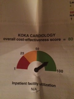 I called one of the medical directors at IBC to inquire about how exactly the score was arrived at, but I only got the general information that the cost/procedure performed was the primary determinant of final score. This did serve to explain why I ranked 21/26 in the ‘green’ category. Even though I did not have a stress lab and did fairly few echo’s or stress tests, those stress tests I did do were at a local hospital at the ‘hospital rate’. I was actually encouraged by the medical director at IBC to get my own stress lab! Interestingly, a physician practice that did echocardiograms on 50% of its patients would come out smelling like a rose to the IBC folks. Meanwhile, a hospital based practice that only tested 5% of their patients would be penalized.